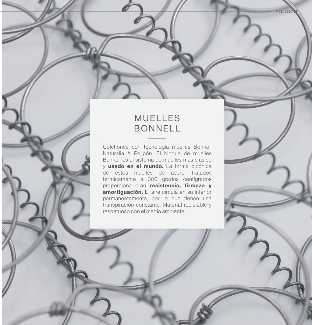 El nuevo colchón Millenium de Poligón, nos ofrece una firmeza media-alta, su núcleo de muelles con Tecnología Bonnell Reinforce, muelles bicónicos de acero de gran firmeza y elasticidad. Con las mismas propiedades en ambas caras. Con dos capas de Biocell que dan firmeza y estabilidad. Una capa de Biotex, material textil multi punzonado recubriendo el núcleo de muelles. Colchón a dos caras con gran estabilidad de lechos. Tapizado en una cara en Tejido Strtch Viscosa Natural, transpirable y de tacto muy agradable para la cara de invierno, Tejido Stretch Cool Sensitive tejido gran elasticidad con efecto frio, termoregulador de la temperatura para la cara de verano. Ademas incorpora planchas de Lana y Algodón que mejoran las propiedades de cada cara del colchón.